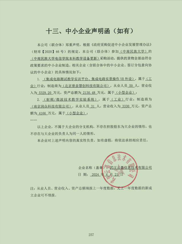 | 1 | 武汉云嘉信息技术有限公司 | 中南民族大学电信学院本科教学设备更新 | 核心产品:北京曾益慧创科技有限公司等 | IECUBE-3100等 | 1批 | 936,000.00 |